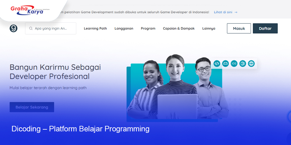 Dicoding adalah platform lokal yang telah diakui oleh Google, IBM, AWS, dan pemerintah Indonesia (Kominfo). Dengan kurikulum berbahasa Indonesia dan sistem pembelajaran berbasis challenge, platform ini sangat cocok untuk pelajar maupun profesional yang ingin memperdalam skill digital. Tersedia banyak kelas gratis, termasuk kelas dari program Digitalent dan Bangkit Academy. Sertifikat dari Dicoding juga diakui oleh banyak perusahaan teknologi di tanah air.