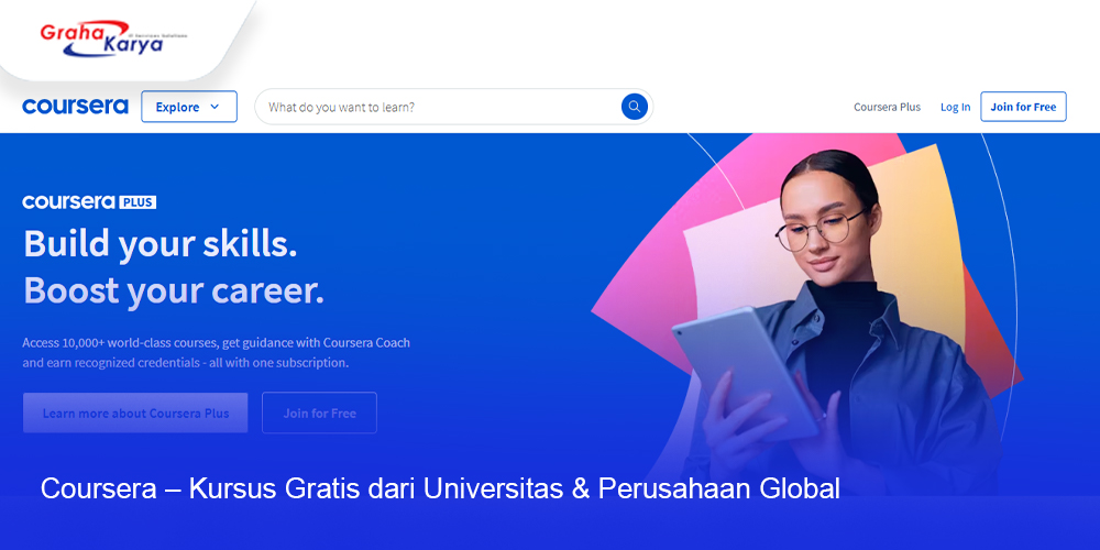 Coursera menyediakan kursus gratis dari universitas ternama dunia seperti Stanford, Yale, dan lembaga besar seperti Google dan Meta. Meskipun sebagian kursus bersertifikat berbayar, Anda tetap bisa mengakses seluruh materi secara gratis. Dengan antarmuka yang mendukung subtitle Bahasa Indonesia, Coursera banyak digunakan oleh mahasiswa dan karyawan profesional di Indonesia.